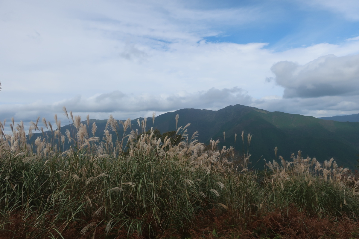 途中の奥海越辺りから景観が開け、山頂付近ではススキが満開でした。