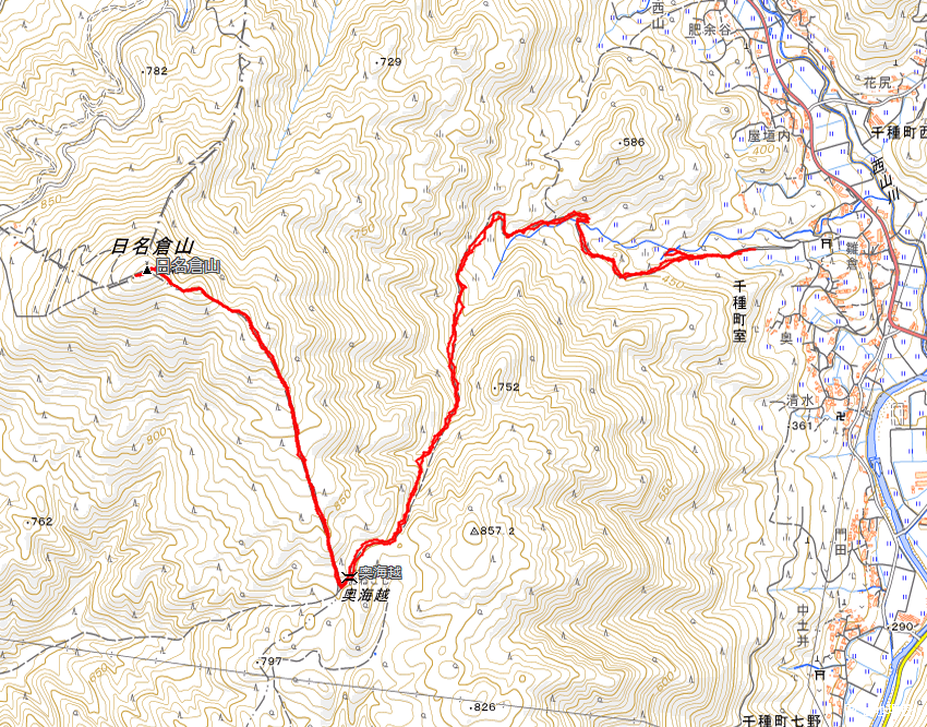ベルピール自然公園から登ると1時間程度と簡単らしいですが、それでは面白くないので日名倉神社の少し上から往復しました。