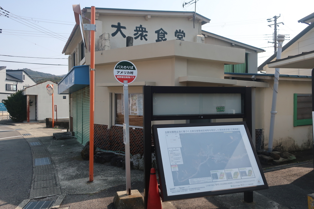 この近くでアメリカ村という場所を見つけました。かって美浜町からカナダに移住した人々が帰ってきて住んだ場所だということです。バス停の名前もアメリカ村です。